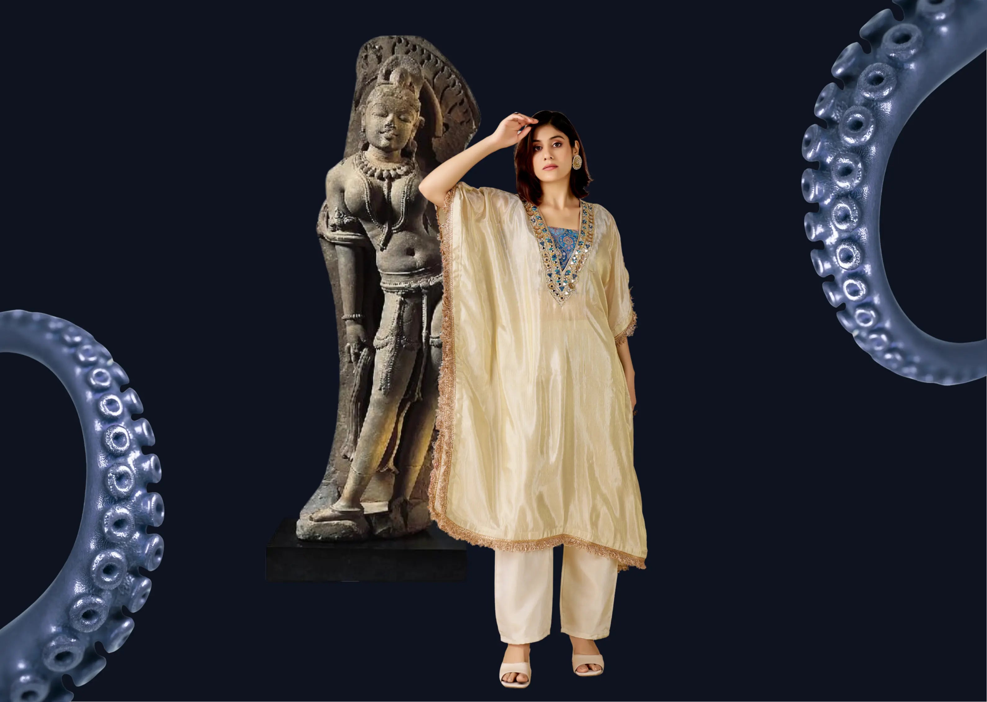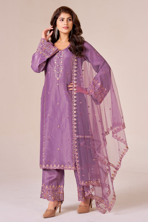 IOLY Ethnic Motifs Embroidered Thread Work Tissue Kurta With Trousers & Dupatta